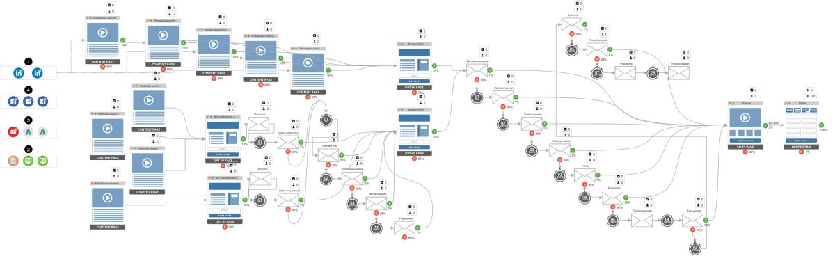 V první řadě určitě oceníte software pro vizualizaci marketingového trychtýře. Ukázky, které jste viděli výše, jsou z nástroje Geru, který ve Včelišti používáme. V Geru si proces nejen navrhnete, ale můžete zde také simulovat provoz a zjistit jeho ziskovost ještě před ostrým spuštěním. Podobný marketingový trychtýř ale připravíte i v mnoha dalších nástrojích nebo si ho můžete jen nakreslit na papír.