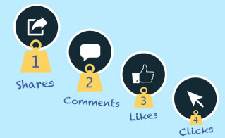 Chcete, aby váš příspěvek fanoušci sdíleli, komentovali, lajkovali nebo aby na něj pouze klikali? Algoritmus Facebooku těmto rozdílným akcím přikládá různou váhu. Čím větší váhu příspěvek má, tím se mu připisuje vyšší skóre a tím výše se objeví v hodnocení, které se následně zobrazí v jeho šancích na zobrazení v News Feedu, viz následující přehledný obrázek. A to přesně chcete. 🙂