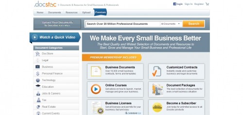 DocStoc.com je známá mezinárodní platforma podporující malé a střední podnikatele. Všechny dokumenty, které si dokážete pro podnikání představit, najdete pravděpodobně tady. Na DocStocu se nachází přes dvacet miliónů hodnotných zdrojů včetně videí, článků a tipů na zlepšení produktivity pro podnikatele.