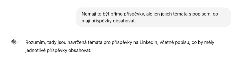 Pokud využíváte ChatGPT na rešerši, nezapomínejte, že je naprogramovaný na generování textu, nikoliv na předávání fakticky správných informací. Z naší zkušenosti doporučujeme zahrnout do promptu konkrétní odkazy nebo dokumenty, ze kterých má AI při rešerši čerpat, abyste mu nedali šanci si vymýšlet něco, co není pravda.