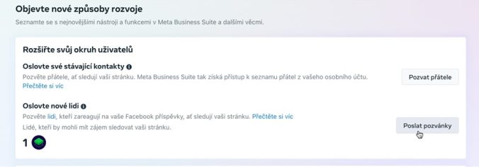 Ve vybraný den vám doporučujeme taktéž odeslat pozvánky ke sledování vaší stránky lidem, kteří v poslední době reagovali na váš obsah. Tuto funkci najdete v Meta Business Suite na Hlavní stránce.