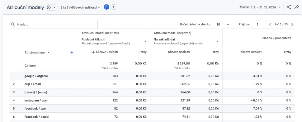 • placené a organické poslední kliknutí,
