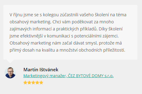 • Získáte 4 bonusy — například novou příručku Začněte s obsahovým marketingem a přístup do online tréninku MarketingObsahem.cz.