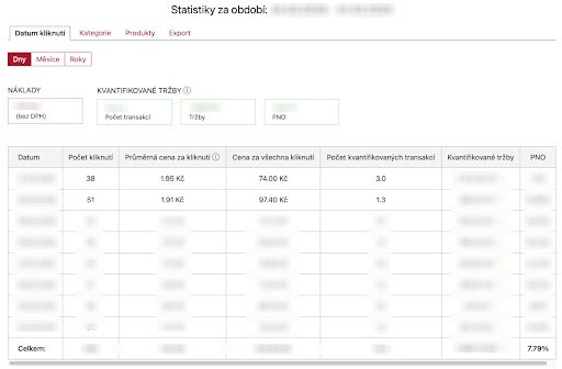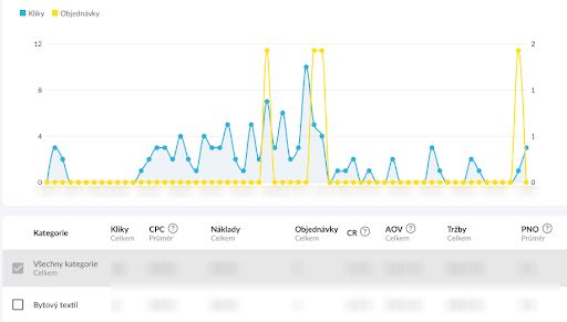 Ukázka statistiky inzerce malého e-shopu v omezeném režimu