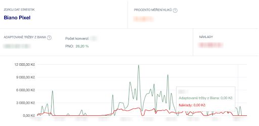 Biano poskytuje vlastní analytiku pomocí Biano Pixelu, který sleduje chování návštěvníků a pomáhá optimalizovat kampaně.