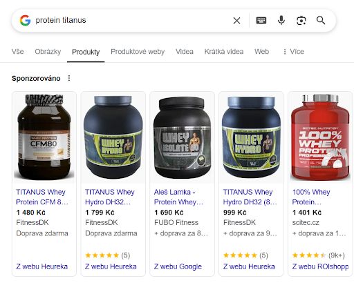Ukázka záložky Produkty ve výsledcích vyhledávání