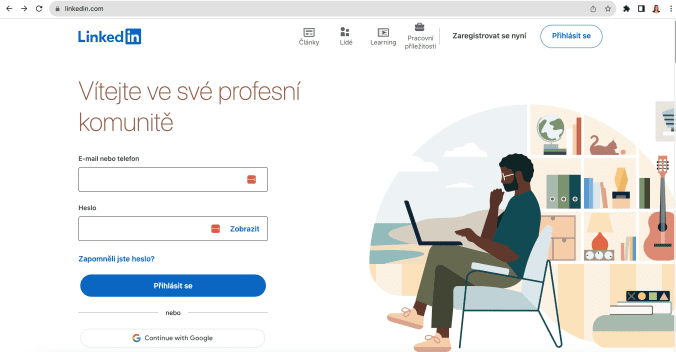 Teorii máme za sebou a jistě se shodneme, že bychom na LinkedIn neměli chybět – ani my, ani vy. Společně se tak můžeme pustit do založení firemního profilu. Je to snadné a zabere vám to jen pár minut. Abyste si mohli založit firemní profil, musíte si nejprve zřídit ten soukromý. Na hlavní stránce jednoduše vyplníte své jméno, e-mail a zvolíte si heslo, nebo se zaregistrujete prostřednictvím svého Google účtu.