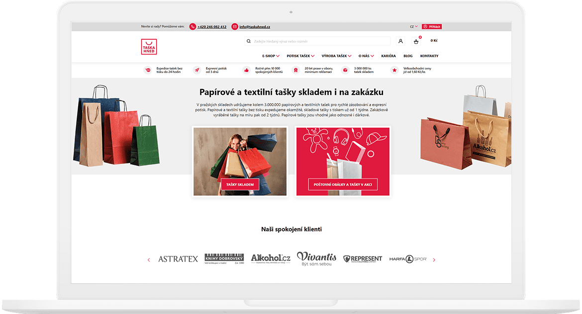 Firma TaškaHned, která se specializuje na výrobu a potisk papírových tašek, nás oslovila s cílem podpořit prodej hlavního produktu a vyvrátit názor, že papírové tašky jsou v porovnání s plastovými drahé. Ve Včelišti máme takové výzvy rádi, a proto jsme se bez váhání pustili do marketingové strategie.