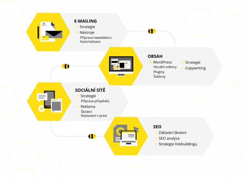 Jsi marketingový nadšenec – nováček? Máme pro tebe skvělou příležitost k získání tolik potřebné marketingové praxe: nabídku stáže ve Včelišti. V rámci ní si na vlastní kůži vyzkoušíš různé druhy činností od e-mailingu přes správu sociálních sítí, copywriting, obsahovou strategii až po SEO. Připraveno máme spoustu studijních materiálů i úkoly z praxe.