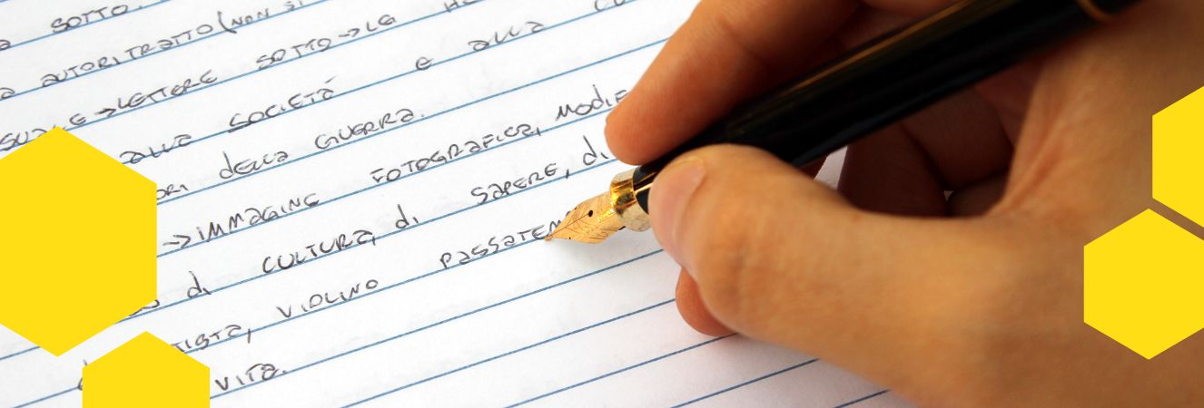 Ruka píšící text na linkovaný papír, symbolizující správné psaní bez hyperkorektnosti.