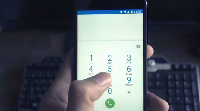 Ruka držící smartphone s otevřenou aplikací pro volání, symbolizující komunikaci v e-mail marketingu.