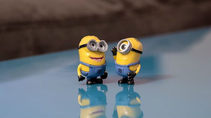 Dva žlutí animovaní postavičky na modrém povrchu, symbolizující komunikaci a interakci v e-mail marketingu.