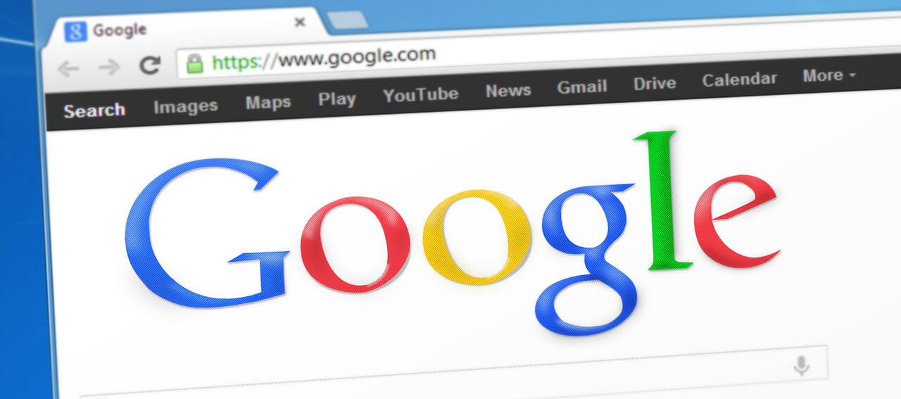Domovská stránka Google s vyhledávacím polem, zaměřená na interní vyhledávání a long tail klíčová slova.