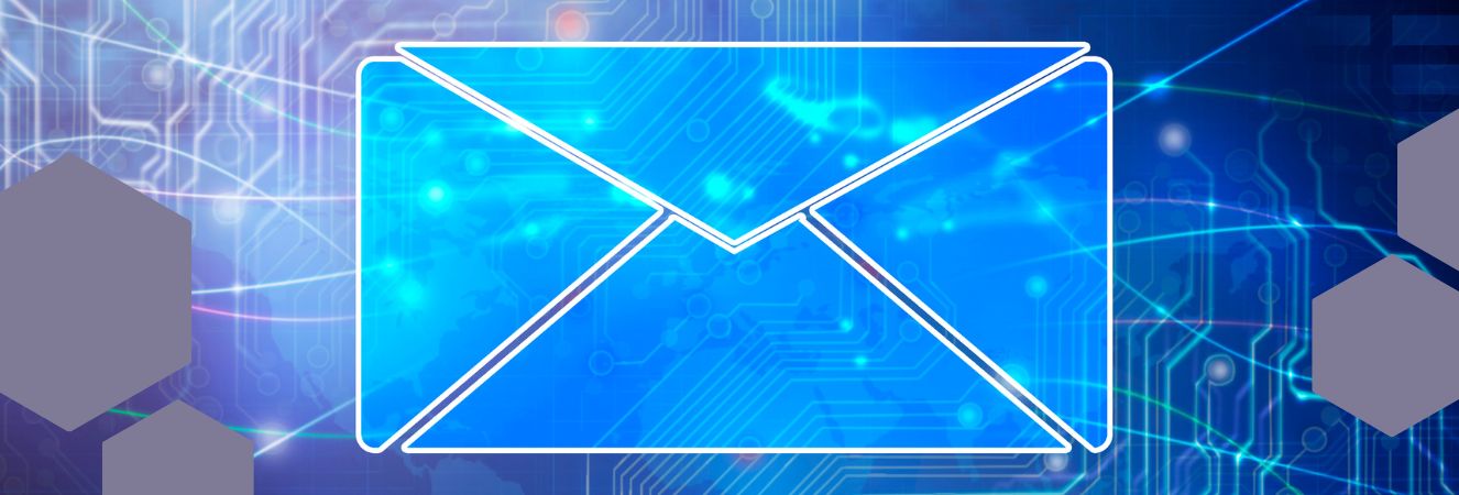 Grafický symbol e-mailu na pozadí digitální sítě, znázorňující témata e-mail marketingu a online komunikace.